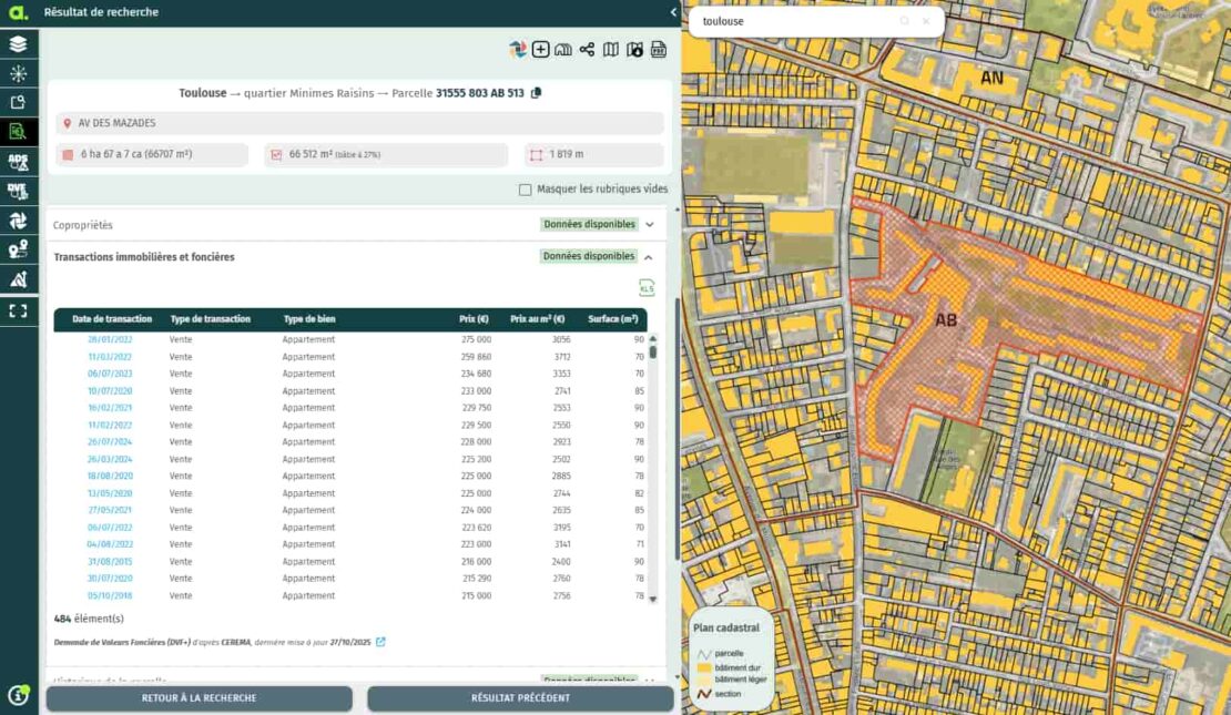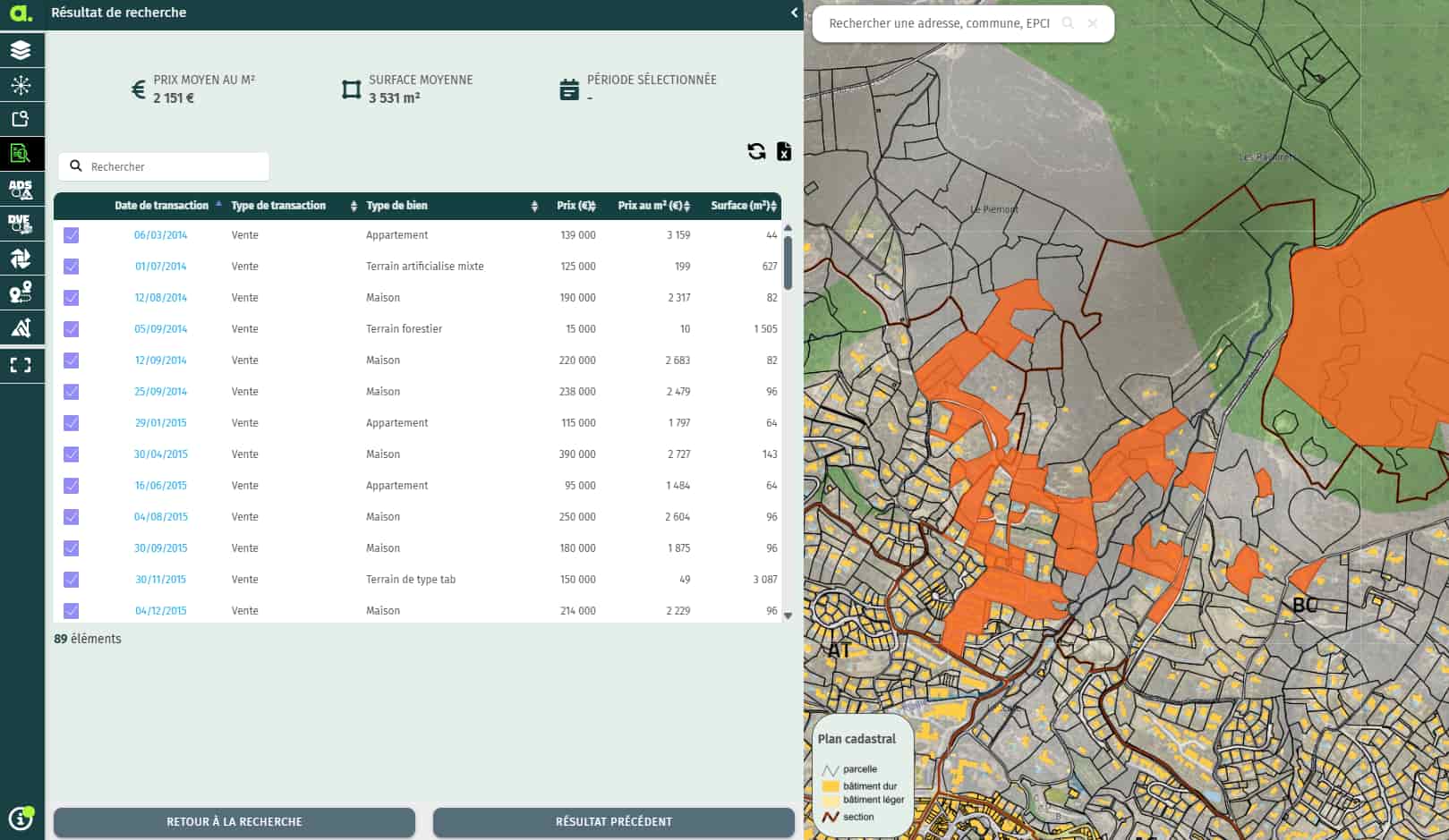 Accédez aux ventes immobilières réalisées depuis 2014 et analysez le marché local directement sur la carte.