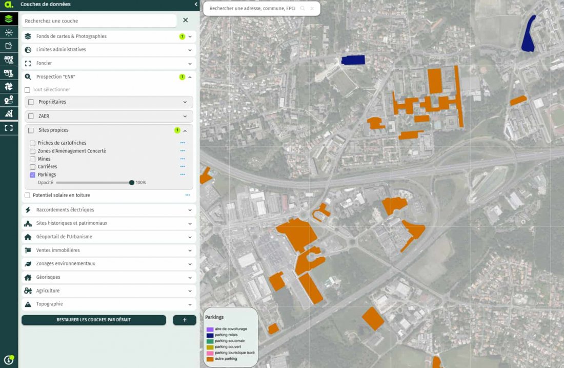 Vous le savez maintenant, les ombrières solaires sont stratégiques pour les pro de l’ENR. Avec le cadre réglementaire et les objectifs environnementaux, la demande augmente fortement. Pour les installateurs et développeurs de centrales photovoltaïques, ces projets représentent une opportunité solide. Et puisque la réussite d’un projet dépend de la capacité à repérer des sites intéressants et à qualifier leur faisabilité, les installateurs ont besoin d’informations fiables pour réussir leur prospection foncière :